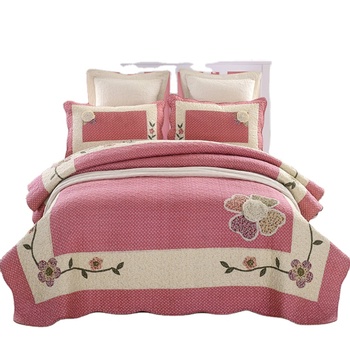 MH-Conjunto de cama de lujo romántico hecho a mano para habitación de niñas, traje de tres piezas lavable, 100% algodón, bordado 3d, color rosa